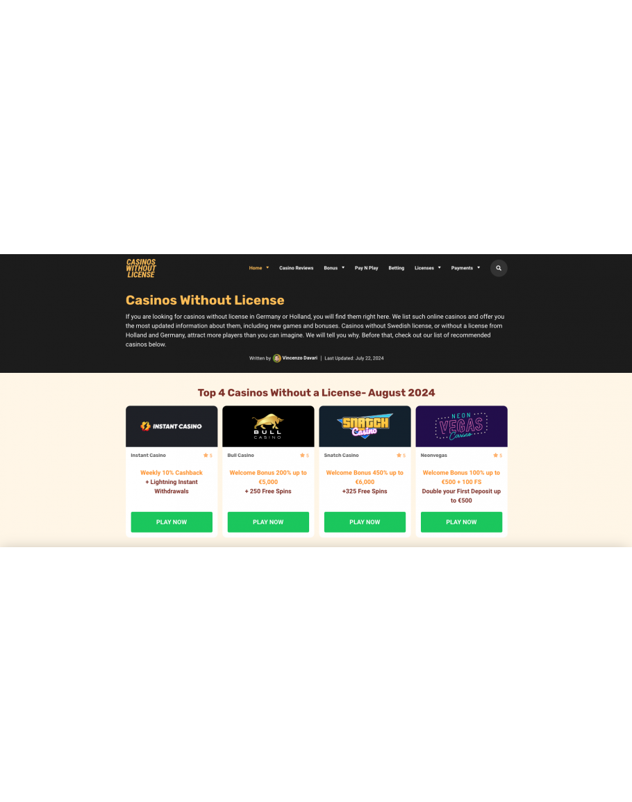 Product Code: Casinos Without Licensing - Website